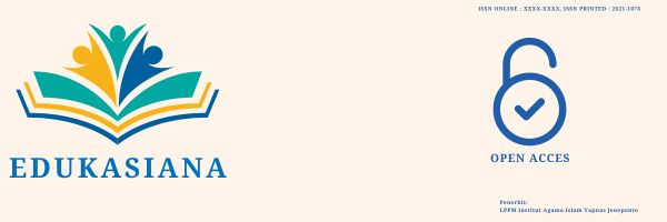 The article about Edukasiana Islam: Jurnal Pendidikan Islam has been reviewed and approved by the author before being submitted for publication. Journals, editor in chief and editorial board have no right or obligation to correct or be responsible for inaccurate and misleading data if any. It is the responsibility of the author. LPPM IAI YAPNAS JENEPONTO.